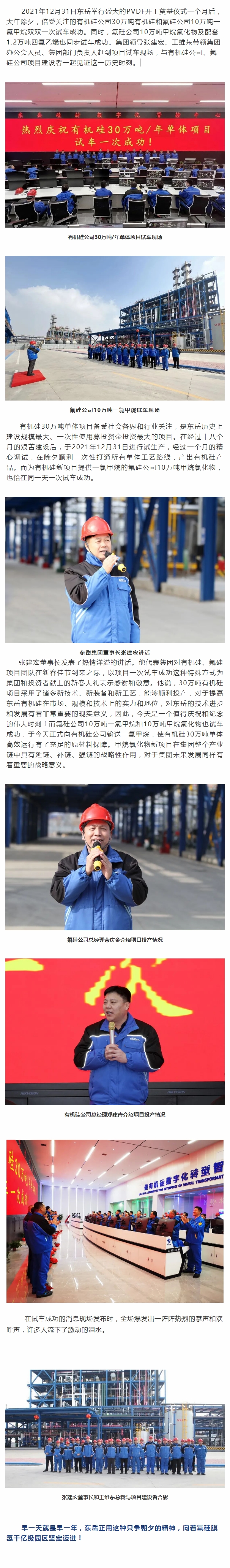除夕,東岳30萬噸有機硅和甲烷氯化物一次試產(chǎn)成功